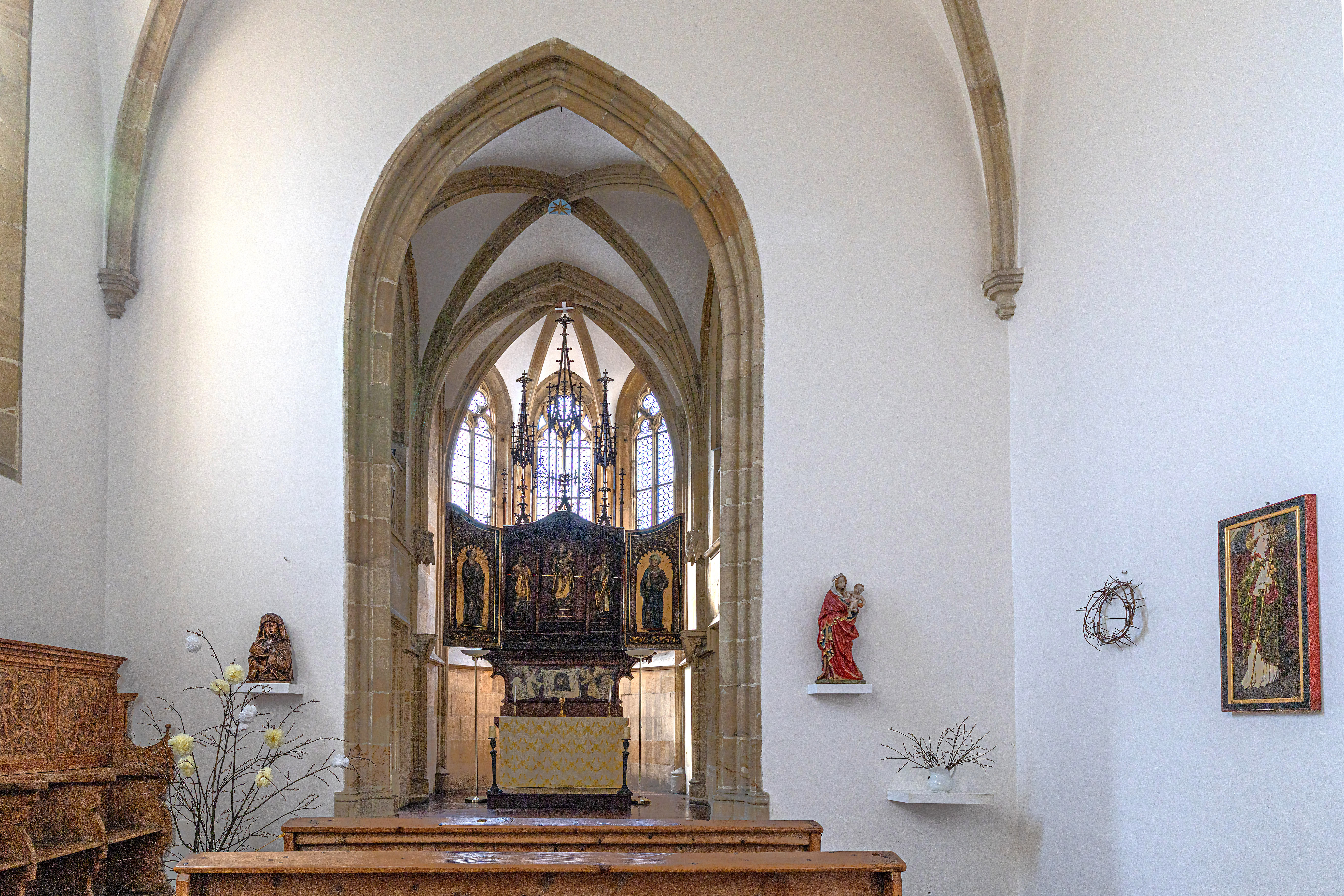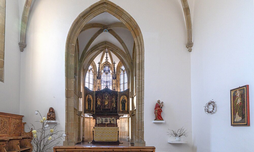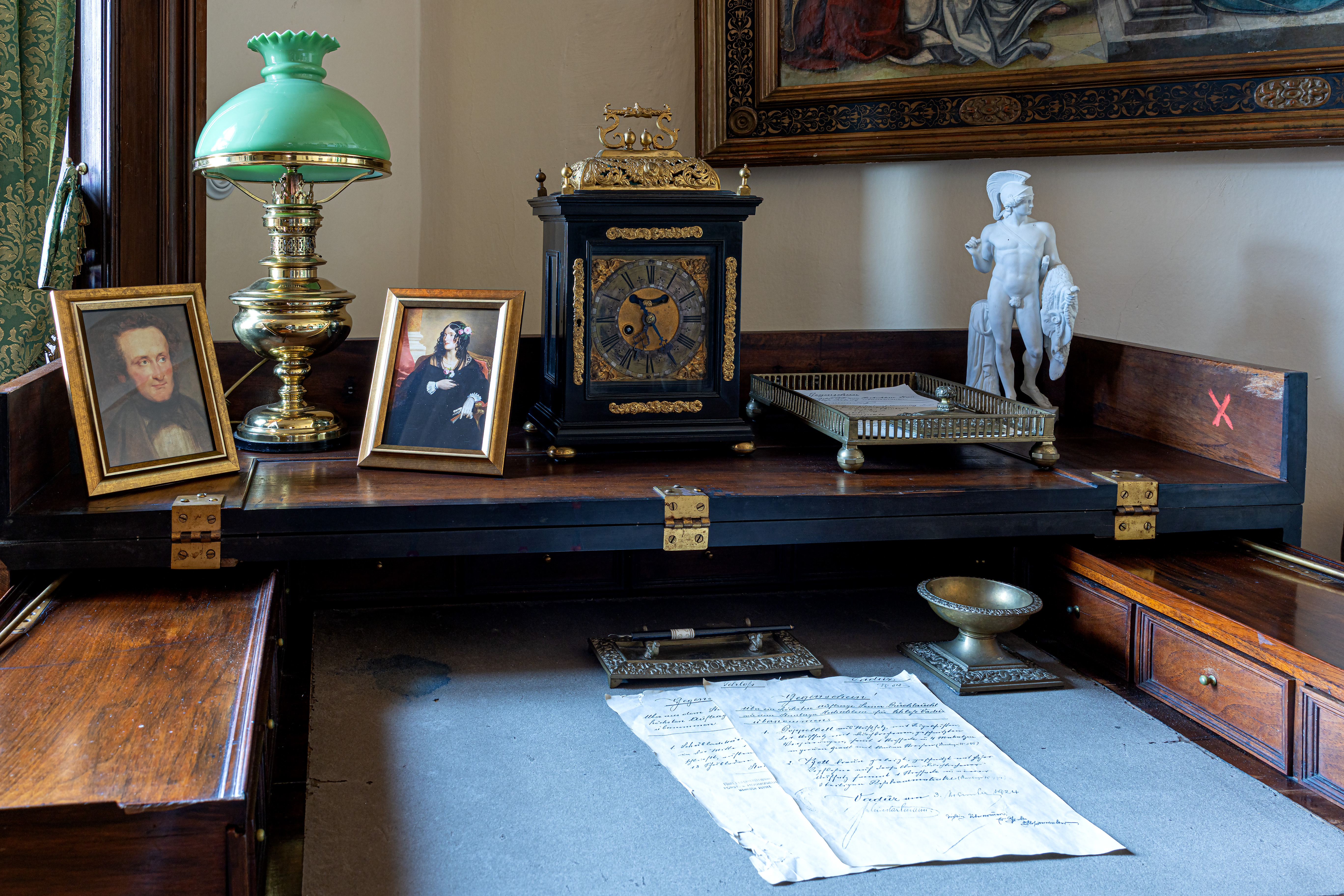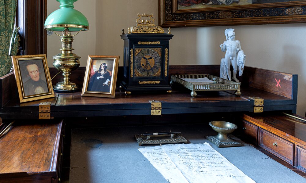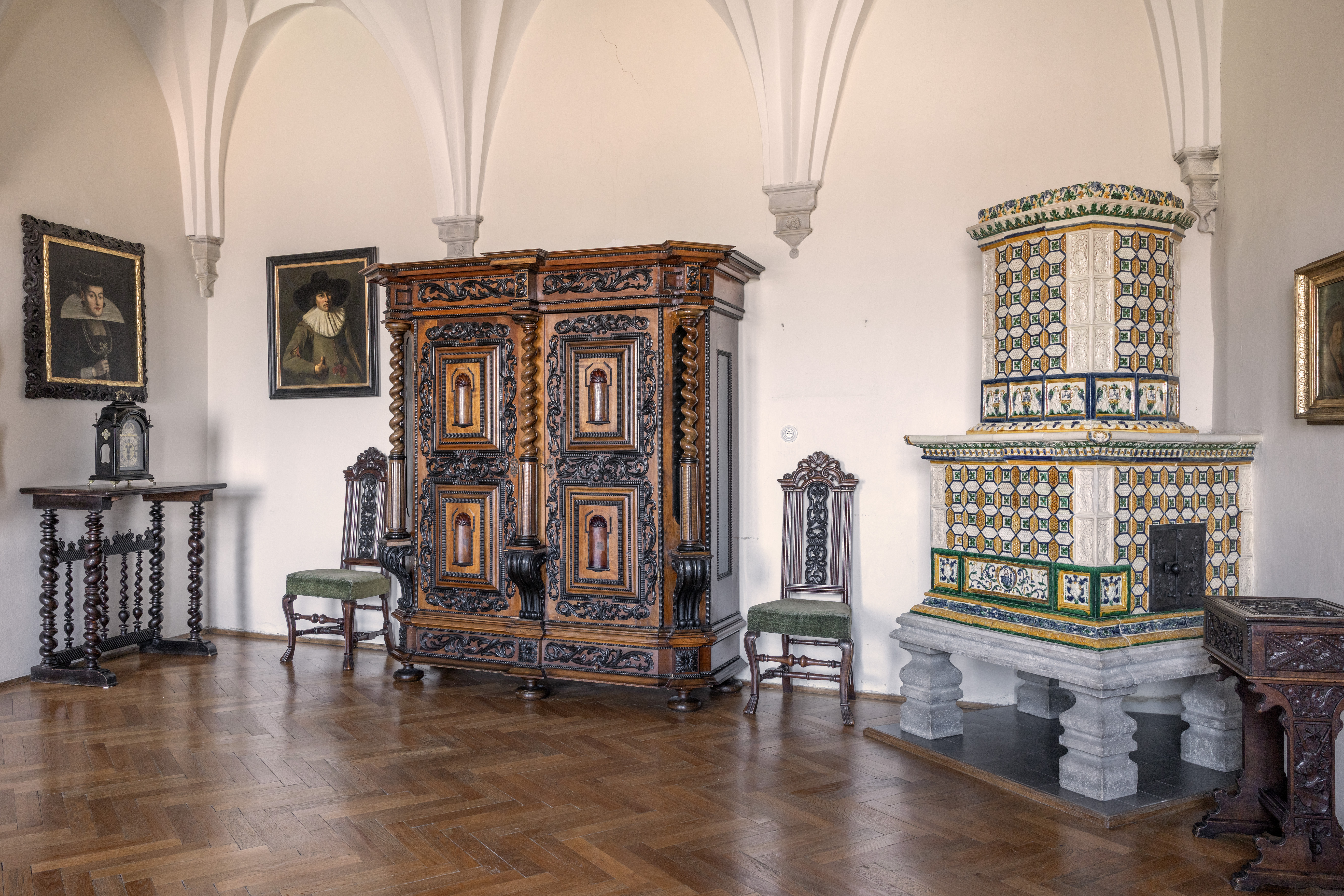 Główna trasa zwiedzania obejmuje reprezentacyjne (gotyckie i renesansowe) wnętrza pierwszego piętra, w których eksponowana jest sztuka europejska z kolekcji księcia Johanna II von und zu Liechtenstein. Obejmuje kaplicę, korytarz i pomieszczenia na pierwszym piętrze wyposażone w meble ostatnich właścicieli. Czas trwania wizyty ok. 60 minut. Wycieczka obejmuje również wizytę w zrekonstruowanej kuchni Liechtensteinu. Dostęp bez barier – możliwość zwiedzania również dla osób na wózkach inwalidzkich.
