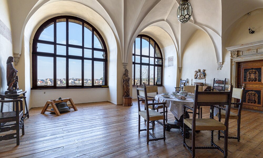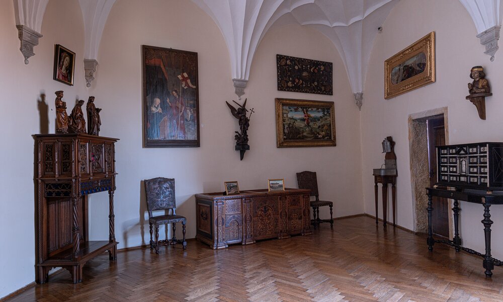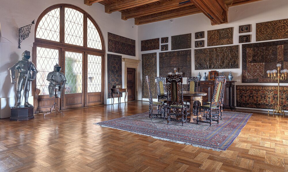 Trasa zwiedzania obejmuje kolejno gotycką kaplicę, korytarz, kompletnie zachowane pomieszczenia pierwszego piętra, w tym okazałą Salę Rycerską oraz pieczołowicie zrekonstruowaną kuchnię. Godna uwagi jest kolekcja europejskiej sztuki dawnej, będąca świadectwiem kolekcjonerskiej pasji księcia Johanna II von und zu Liechtenstein (1840-1929). Oprowadzanie trwa około 60 min. Ekspozycja jest dostępna dla osób z dysfunkcjami ruchu (wejście od strony parku).