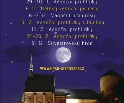 V listopadu je hrad otevřen: 29. a 30 . 11. 2025. V prosinci je hrad otevřen: 6. - 7., 13. - 14., 25. - 28. a 31. 12. 2025. Vstupenky lze zakoupit i online. Těšíme se na Vás.