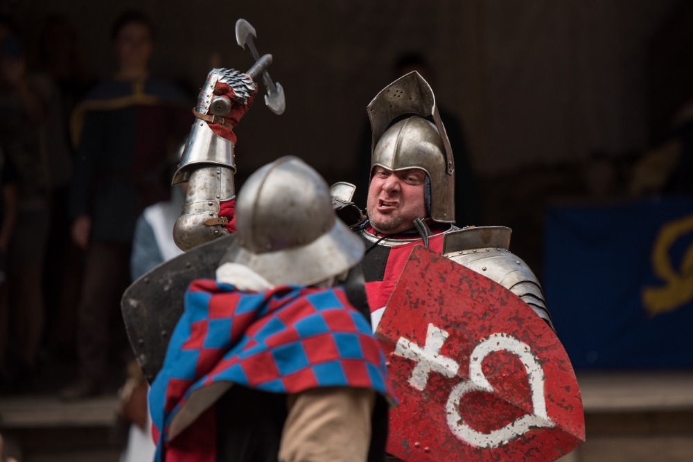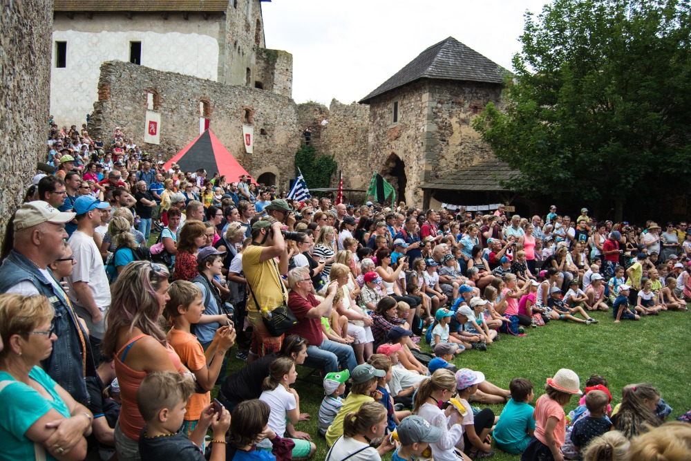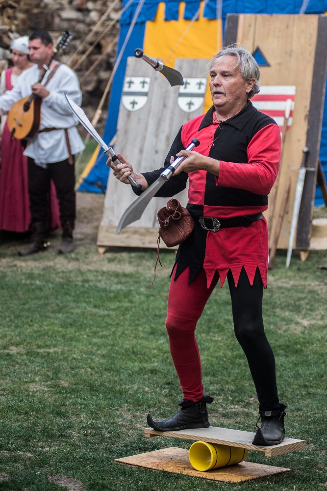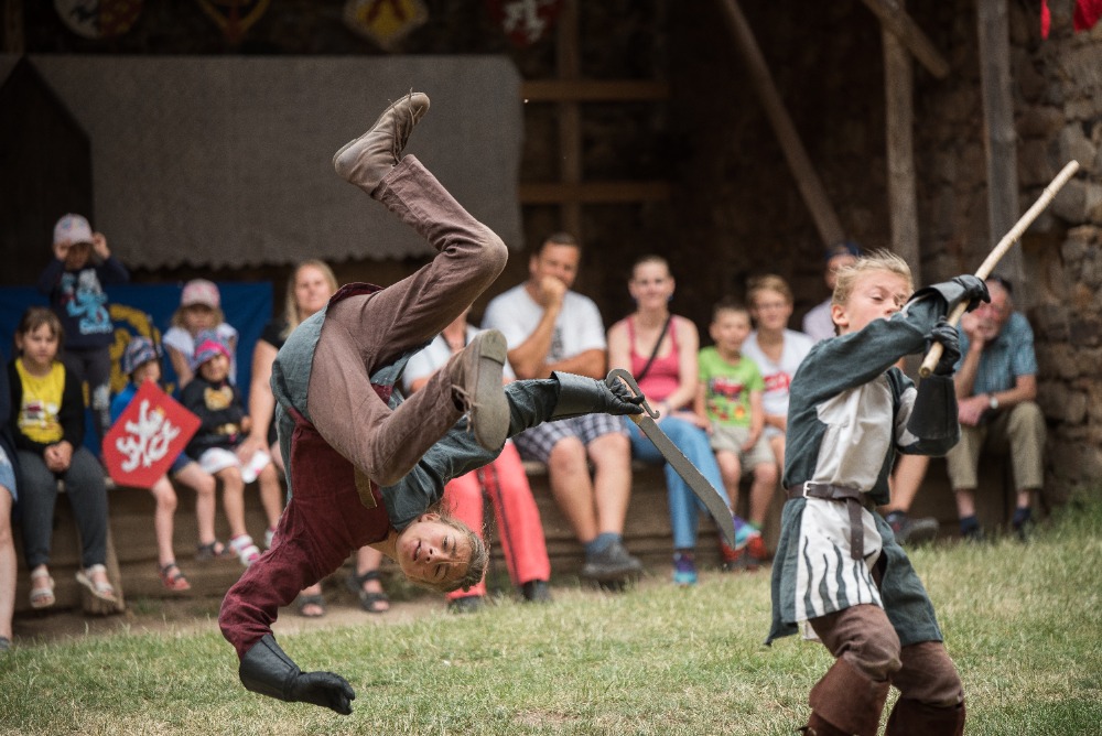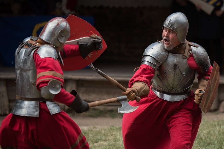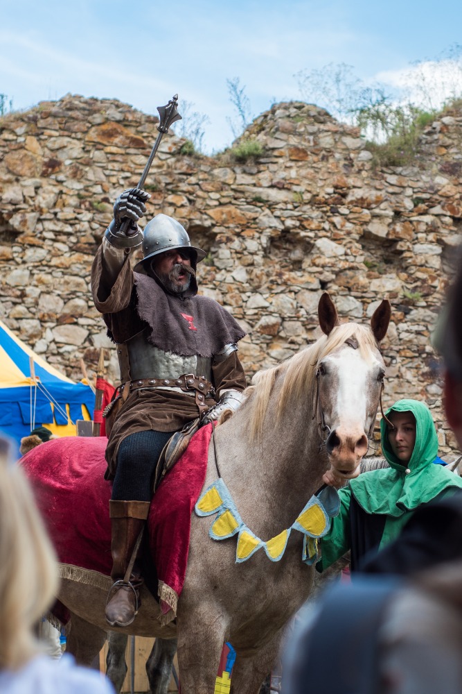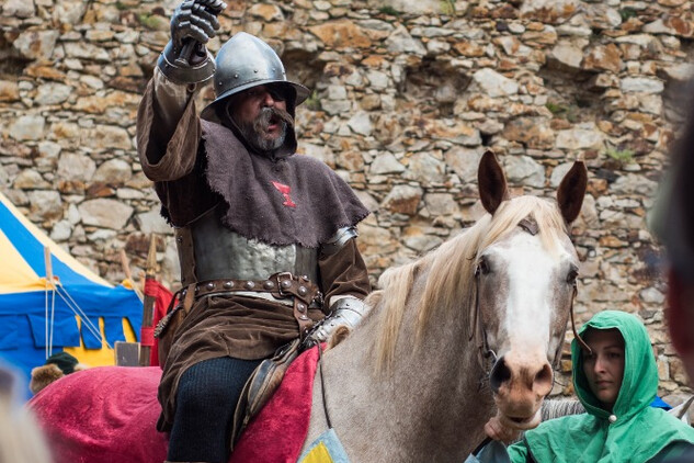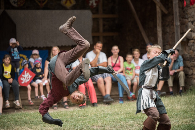 14:00 Příjezd krále Václava, ceremonie, šermířské souboje a kejkle.