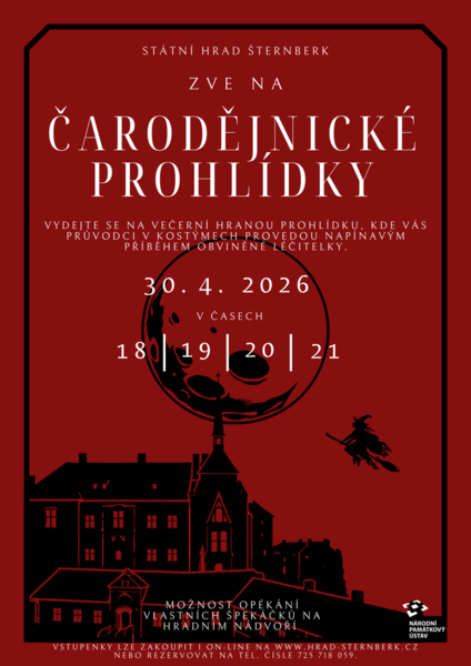 Státní hrad Šternberk zve návštěvníky na tematické večerní prohlídky s názvem Čarodějnické prohlídky, které se uskuteční dne 30. dubna 2026.