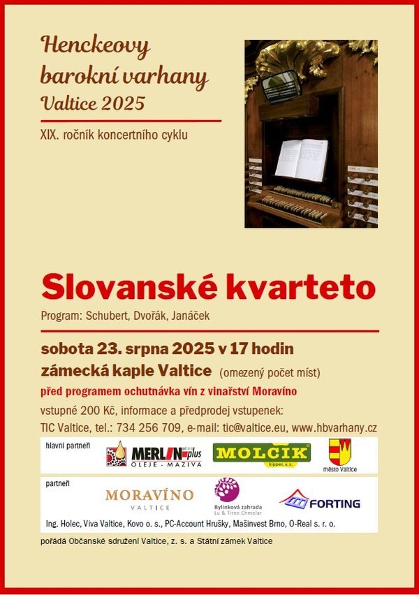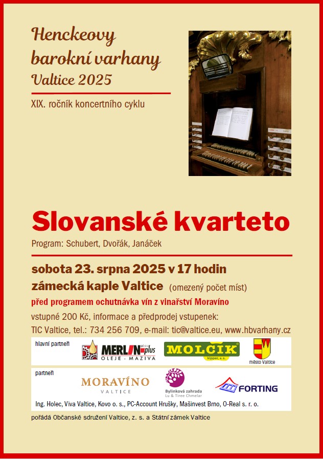 Koncert se koná v sobotu 23. srpna 2025 od 17:00 v kapli zámku Valtice.