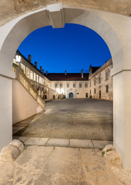 Ve slavnostním banketním sále vás čeká komorní koncert a celý večer vyvrcholí ve 22:00 působivou světelnou show, která rozzáří arkádové nádvoří.