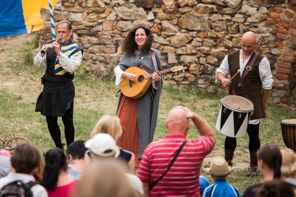 14:00 Příjezd krále Václava, ceremonie, šermířské souboje a kejkle.