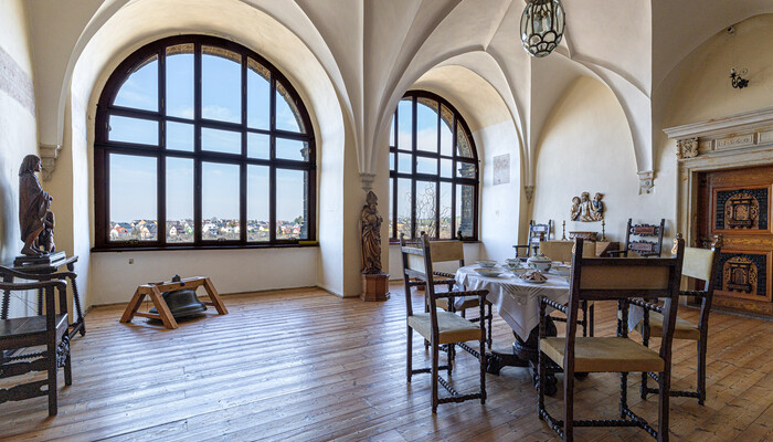 Navštívíte interiéry prvního patra středověkého hradu, upraveného v závěru 19. století na pohodlné sídlo knížete Jana II. z Liechtensteina. Společenské a privátní prostory zaplnil cennými sbírkami a obnovený hrad vybavil technickými vymoženostmi v podobě výtahu či kuchyně.